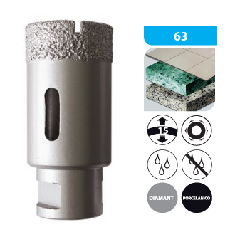 Korona diamentowa do wiercenia na mokro i na sucho, do terakoty, glazury, marmuru, granitu, płytek ceramicznych, kamienia naturalnego i gresu ceramicznego 55 mm x M14, Wys. 15 mm dług.50 mm