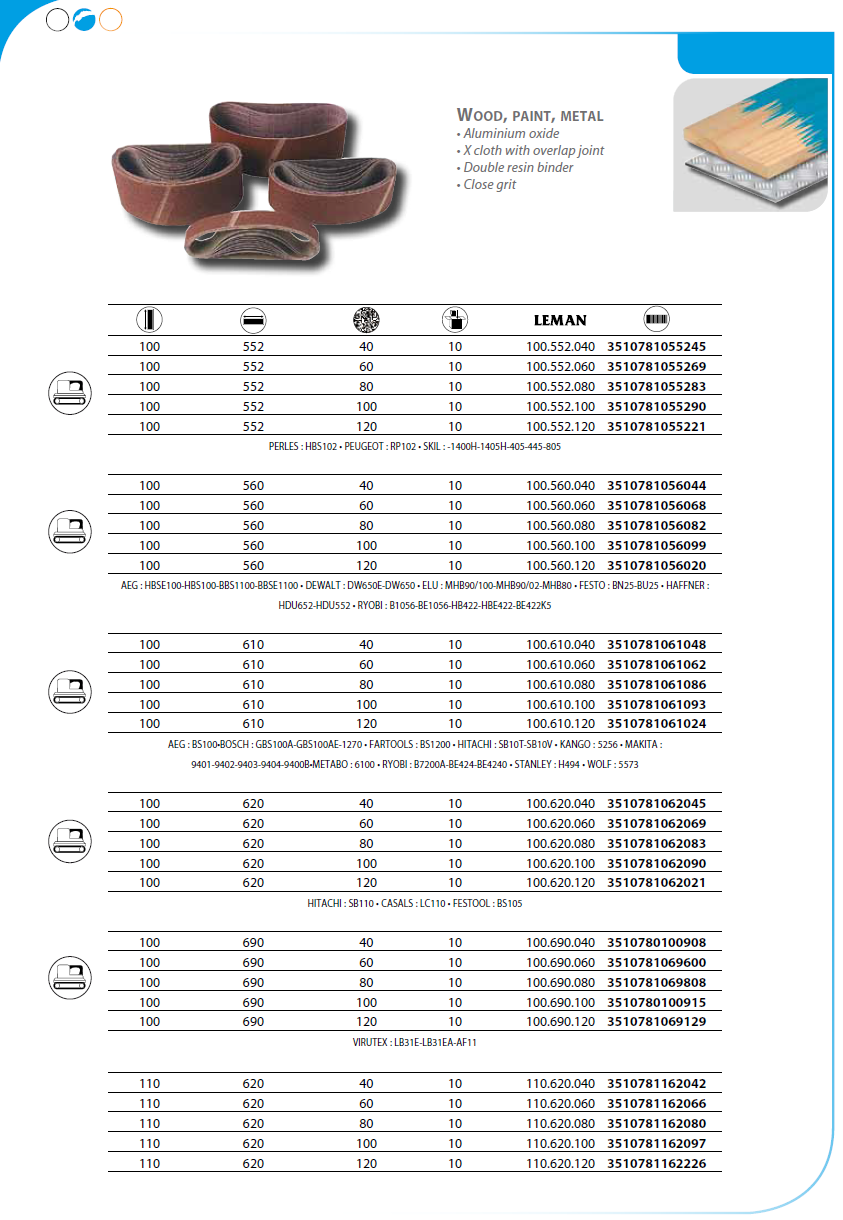 Pas bezkońcowy 100x690mm GR-100 ziarno: elektrokorund / zastosowania: drewno, farby, metale